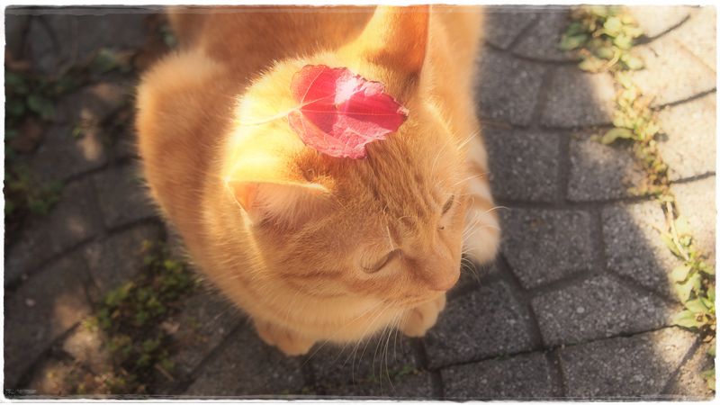 枯れ葉を乗せてみた。。。されるがまま(笑)