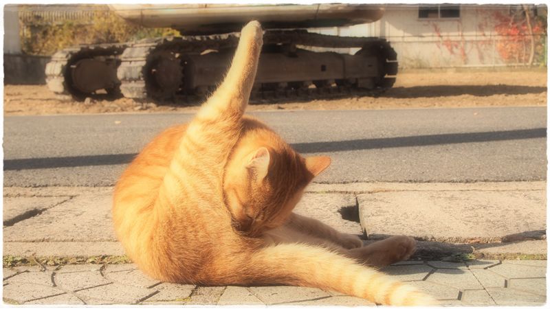 いつものノラ猫がゴロゴロ