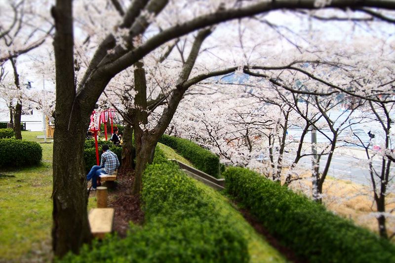 公園をぐるっと囲うように桜が植えられています