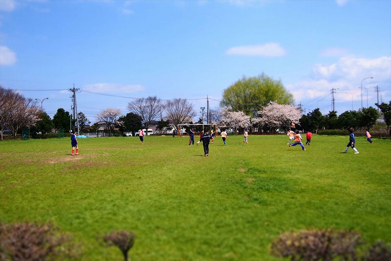 天気よかったので子供たちがサッカーをしていました